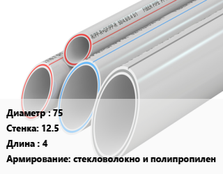 Труба полипропиленовая 75 s=12.5 L=4 стекловолокно и полипропилен