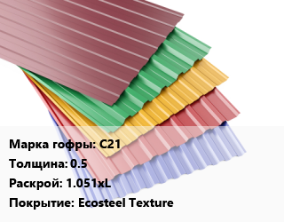 Профнастил с полимерным покрытием С21 s=0.5 1.051хL Покрытие:Ecosteel Teхture