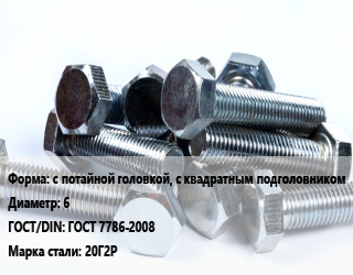 Болт с потайной головкой, с квадратным подголовником 6 ГОСТ 7786-2008 Сталь: 20Г2Р