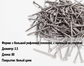 Гвоздь с большой рифленой головкой, с насечкой на стержне 3.5х80 белый цинк