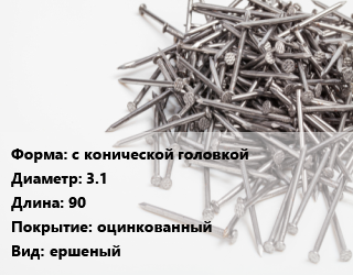 Гвоздь с конической головкой 3.1х90 оцинкованный ершеный