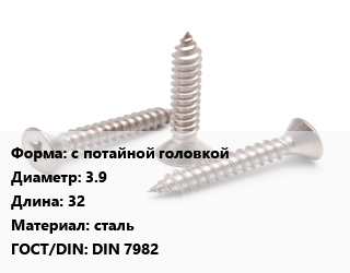 Саморез с потайной головкой D=3.9 L=32 сталь ГОСТ: DIN 7982
