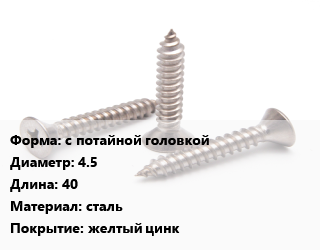 Саморез с потайной головкой D=4.5 L=40 сталь желтый цинк