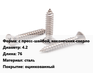 Саморез с пресс-шайбой, наконечник-сверло D=4.2 L=76 сталь оцинкованный