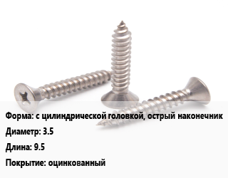 Саморез с цилиндрической головкой, острый наконечник D=3.5 L=9.5 оцинкованный