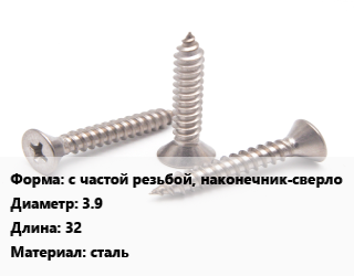 Саморез с частой резьбой, наконечник-сверло D=3.9 L=32 сталь