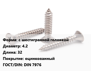 Саморез с шестигранной головкой D=4.2 L=32 оцинкованный ГОСТ: DIN 7976