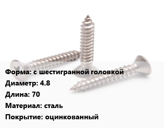 Саморез с шестигранной головкой D=4.8 L=70 сталь оцинкованный