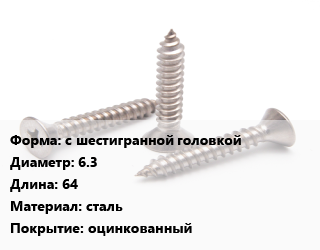 Саморез с шестигранной головкой D=6.3 L=64 сталь оцинкованный