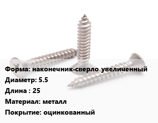 Саморез наконечник-сверло увеличенный D=5.5 L=25 металл оцинкованный