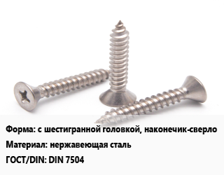 Саморез с шестигранной головкой, наконечик-сверло нержавеющая сталь ГОСТ: DIN 7504