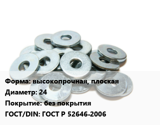 Шайба высокопрочная, плоская D=24 без покрытия ГОСТ: ГОСТ Р 52646-2006