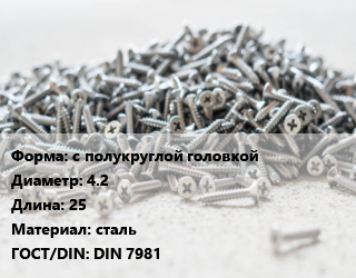 Шуруп с полукруглой головкой 4.2х25 сталь ГОСТ: DIN 7981