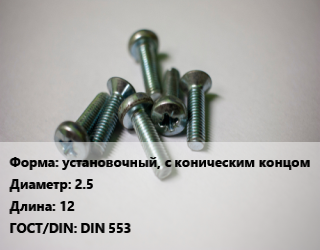 Винт установочный, с коническим концом 2.5х12 DIN 553