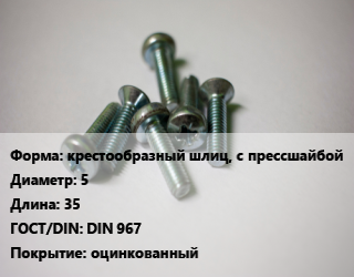 Винт крестообразный шлиц, с прессшайбой 5х35 DIN 967 оцинкованный