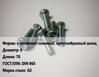 Винт с потайной головкой, крестообразный шлиц 8х70 DIN 965 Сталь: А2