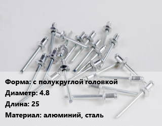 Заклепка с полукруглой головкой 4.8х25 алюминий, сталь