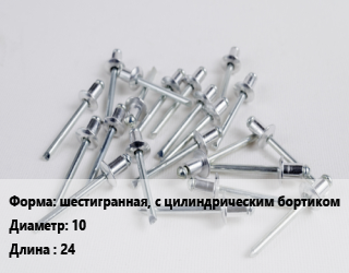 Заклепка шестигранная, с цилиндрическим бортиком 10х24 сталь
