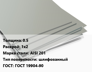 Лист нержавеющий 0.5 1х2 Сталь: AISI 201 Тип:шлифованный ГОСТ 19904-90