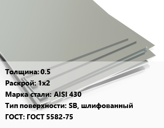 Лист нержавеющий 0.5 1х2 Сталь: AISI 430 Тип:SB, шлифованный ГОСТ 5582-75