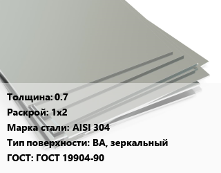 Лист нержавеющий 0.7 1х2 Сталь: AISI 304 Тип:BA, зеркальный ГОСТ 19904-90