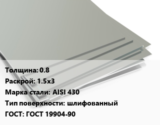 Лист нержавеющий 0.8 1.5х3 Сталь: AISI 430 Тип:шлифованный ГОСТ 19904-90