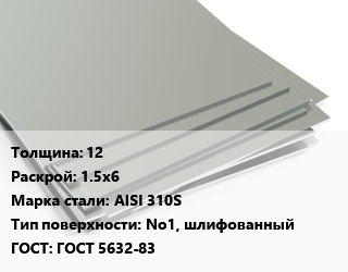 Лист нержавеющий 12 1.5х6 Сталь: AISI 310S Тип:No1, шлифованный ГОСТ 5632-83