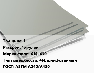 Лист нержавеющий 1 1хрулон Сталь: AISI 430 Тип:4N, шлифованный ASTM A240/A480