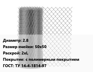 Сетка-рабица 2.8 Ячейка: 50х50 2хL с полимерным покрытием ГОСТ: ТУ 14-4-1814-97
